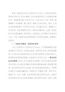 县委、县政府决定召开全县防汛工作会议,主要任务是传达贯彻全市防汛工作会议精神,分析当前我县防汛工作面临的形势任务,安排部署2021年防汛工作,动员全县上下统一思想,提高警惕,未雨绸缪,精心组织,确保今年安全度汛。刚才,X书记全面安排部署