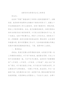准源头,理顺头绪,做好疏导工作,确保社会稳定。同志们,本届任期由三年改成了五年,支部书记还要按照法定程序全部完成“一肩挑”。乡村振兴的枪声已经打响,做好这一届村支部班子的工作,任务艰巨,意义重大,希望你们能在
