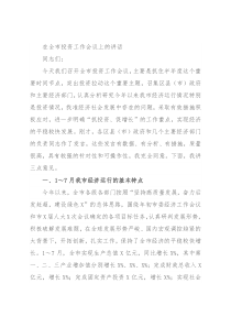在全市投资工作会议上的讲话同志们:今天我们召开全市投资工作会议,主要是抓住半年度这个重要时间节点,突出投资拉动这个重要主题,召集区县(市)政府和主要经济部门,认真分析研究今年以来我市经济运行情况特别是投资情况,找准经济社会发展中存在的问题,采取有效措施积极应对,进一