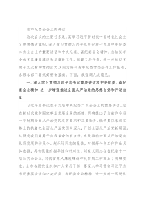 落实。X同志将代表市纪委常委会作工作报告,各级各部门要抓好贯彻落实。下面,我强调几点意见。一、深入学习贯彻习近平总书记重要讲话和中央纪委、省纪委全会精神,进一步增强推进全面从严治党的思想自觉和行动自觉习近平总书记在十九届中央纪委二次全会上的重要讲话,站在新时代党和国家事业发展全局的