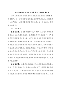 关于加强新生代民营企业家培育工作的实施意见为深入贯彻落实习近平总书记在民营企业座谈会上的重要讲话精神,进一步加快新生代民营企业家的健康成长,助推我市“××”战略,实现民营经济高质量发展,结合我市实际,制定本实施意见。一、总体要求1.指导思想。