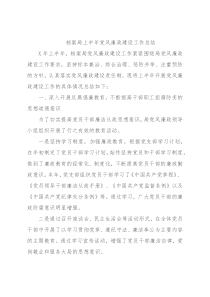 档案局上半年党风廉政建设工作总结X年上半年,档案局党风廉政建设工作紧紧围绕局党风廉政建设工作要求,坚持标本兼治、综合治理、惩防并举、注重预防的方针,认真落实党风廉政建设责任制。现将上半年开展党风廉政建设工作的具体情况总结如下:一、深入开展反腐倡廉教育,不断提高干部