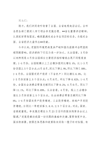 同志们:刚才,我们共同收听收看了全国、全省电视电话会议,全市各级各部门要深入学习领会李克强总理、**省长重要讲话精神,认真抓好贯彻落实,确保圆满完成全年各项目标任务,为稳定全国、全省经济大盘作出**贡献。今年以来,受国际环境更趋复杂严峻和国内疫情冲击明显的超预期影响,经济新的下行压力进一步加大