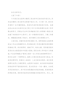 台、党性锻炼的熔炉。为达到这一目的,各位支部书记重任在肩,学校党委也责无旁贷,让我们共同努力,把我们的支部建设好,把我们的党组织建设好、把我们的党建设好,为实现国家和学校的发展目标提供坚强的政治保障和组织保障。