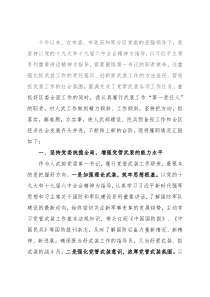 管武装的能力水平作为人武部党委第一书记,履行党管武装工作职责,最根本的是把握好方向。一是加强理论武装,筑牢思想根基。以党的十九大和十九届六中全会精神为指导,认真学习习近平新时代强军思想和习主席关于国防和军队建设系列重要讲话,了解国防军队建设的最新动向,始