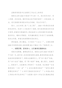 ,主要是回顾2020年取得的成绩,安排部署2021年重点工作,下面我讲三点。一、回顾历程,坚定信心,立足教育发展新起点艰难方显勇毅,磨砺始得玉成。刚刚过去的2020年是极不平凡的一年,面对突入其来的新冠肺炎疫情,教育局党组在县委、县政府的坚强领导下,带领全县教职员工,用“四
