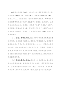 改意见。(五)形成共建共治共享。社区坚持“居民自治”与“改造提升”双同步精细化管理的原则,通过成立小区党支部、物管委员会、红色物业等,大力推动业主自治、建立健全物业管理,创新“纵向到底、横向到边、协商共治”的治理体系,建立街道、社区、物业等多方联动机制,完善小区