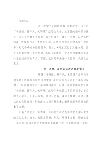 表单位作了表态发言,各部门各单位一定要按照实施方案具体要求抓好贯彻落实。下面,就如何开展好本次活动,我讲三点意见。一、统一思想,深刻认识活动重要意义开展“守规矩、强作风、优环境”活动是贯彻落实上级决策部署的迫切需要。面对今年乃至未来五年时间保增长、促发展的艰巨任务和紧迫要求,区