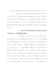党中央指定学习材料情况。本人认真学习了习近平总书记在党史学习教育动员大会上的重要讲话和《论中国共产党历史》《中国共产党简史》等党史学习教育必读书目,深刻把握其精神含义,从中汲取力量,切实牢记初心使命。逐字逐句的读原文,在党史中感悟