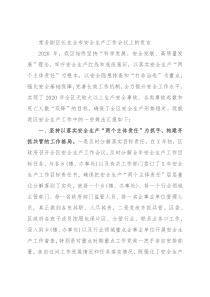 础保障,完善长效工作机制,全力提升安全工作水平,实现了2020年全区无较大以上生产安全事故、各类事故起数和死亡人数“双降”的目标,确保了全区安全生产形势稳定。现就我区安全生产工作中的一些做法汇报如下:一、坚持以落实安全生产“两