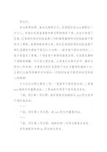欢迎和衷心的感谢!今天会议议程主要有三项。一是宣布干部任免决定;二是请xxx副部长作重要讲话;三是由新任领导干部作表态发言。下面,进行第一项议程:请区委组织部副部长xxx同志宣布干部任免决定。……下面,进行第二项议程:请xxx同志作重要讲话。……下面,进行第三项议程:请新任的八位同志做表态发