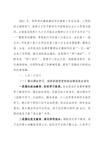 展,提供了坚强有力的政治和纪律保障。一、主要工作情况(一)强化理论学习,始终坚持把党的政治建设放在首位一是强化政治教育,夯实学习效果。结合政法队伍教育整顿学习教育环节,强化组织领导,压紧压实主体责任,通过理论中心组集中
