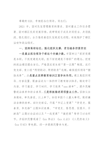 尊敬的XXX、考核组各位领导,同志们:2021年,面对队伍管理教育的要求、面对重点工作任务需要、面对辖区良好发展形势,我带领班子成员共同担当、共迎挑战、稳扎稳打,全力推进基层队伍规范化进程,有效维护了辖区治安和政治稳定。一、坚持高标站位,强化组织支