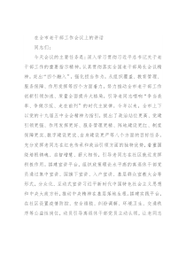 在全市老干部工作会议上的讲话同志们:今天会议的主要任务是:深入学习贯彻习近平总书记关于老干部工作的重要指示精神,认真贯彻落实全国老干部局长会议精神,突出“四个融入”,强化担当作为,从组织覆盖、教育管理、服