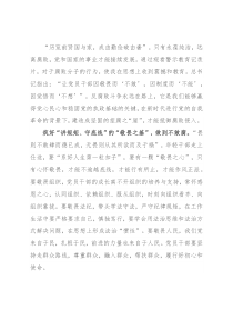 看齐、向组织靠拢。要敬畏法纪,带头学法守法,严守纪律规矩,在工作生活中要严格要求自己,慎独笃行,要学会用法治思维和法治方式解决问题,在思想上形成法治“惯性”。要敬畏人民,我们党来自于民,扎根于民,前进的力量也来自于人民。党员干部要坚