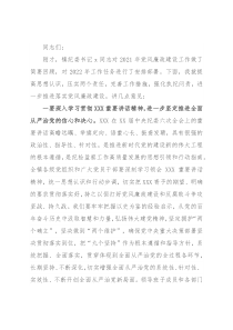 同志们:刚才,镇纪委书记x同志对2021年党风廉政建设工作做了简要回顾,对2022年工作任务进行了安排部署。下面,我就提高思想认识,压实两个责任,完善工作措施,强化执纪问责,进一步推进落实党风廉政建设,讲几点意见:一要深入学习贯彻XXX重要讲话精神,进一步坚定推进全面从严治党
