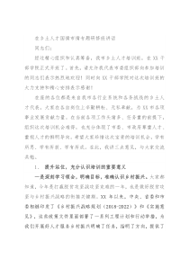 示范、带动作用,对推动当地经济社会发展具有积极的影响,是乡村振兴的主力军。通过这次培训,希望大家能够更加清醒的认识自己在服务脱贫攻坚、乡村振兴战略中的定位,进一步发挥自身优势和专业特长服务群众,抓住国家实施乡村振兴战略的政策机遇,顺势而为,借势而归,回乡投资兴业,建功立业,积极投身到支持家乡建设发