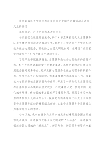 在市直属机关党员志愿服务队成立暨助力创城活动启动仪式上的讲话各位领导、广大党员志愿者同志们:今天我们在这里隆重集会,举行X市直属机关党员志愿服务队成立暨助力创城活动启动仪式,旨在号召和动员广大党员积极投身社会志愿服务,积极助力全国文