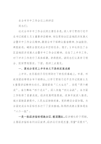 面完成全年目标任务。刚才,X市长传达了全区县域经济发展大会暨年中工作会议精神,总结了上半年工作,对下半年工作进行了具体部署,讲得很好,请同志们认真学习领会、抓好贯彻落实。下面,我讲三点意见。一、要充分肯定上半年来之不易的发展成绩上半年