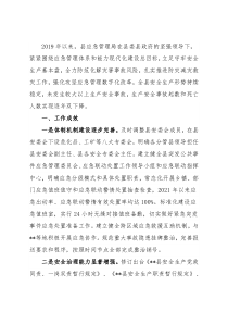 救援力量为重要补充的应急救援体系。2019年以来新扶持成立*支社会化救援队伍,培育*支市级应急队伍,建设完成**、***支专业森林消防骨干队伍,目前我县社会化应急救援队伍已达*支。五是应急基础保障持续夯实。全面推进应急管理数字化改革,深化“最多跑一次”改革、掌上执法应用,加速推