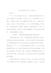 在全市金融工作会议上的讲话同志们:今天,召开全市金融工作会议,主要任务是贯彻落实中央、省有关金融工作会议精神,总结去年工作,安排部署今年工作。刚才,市金融工作局、相关金融机构分别发了言,大家既总结了成绩,也分析了问题,同时提出了下步工作的主要措施,总体来看,大家都情况明、思路清、措施实,成绩值得