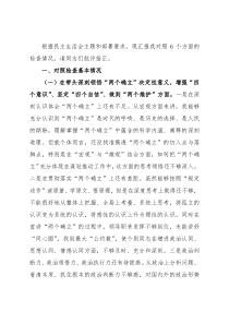 根据民主生活会主题和部署要求,现汇报我对照6个方面的检查情况,请同志们批评指正。一、对照检查基本情况(一)在带头深刻领悟“两个确立”决定性意义,增强“四个意识”、坚定“四个自信”、做到“两个维护”方面。一是在深刻认识体会“两个确立”上还