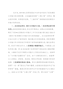 会议安排部署,制定下发《**全面推进乡村振兴三年行动实施方案(2022-2024)》《**关于抓党建促乡村振兴有关具体措施》,33名县级领导带头包乡走村入户督导指导,推动重点任务落地落细。把抓党建促乡村振兴作为领导班子和