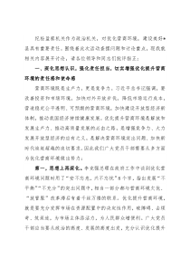 纪检监察机关作为政治机关,对优化营商环境,建设美好*县具有重要责任。围绕着此次活动查摆问题和讨论重点,现我就相关内容展开讨论,请各位领导和同志们批评指正:一、深化思想认识,强化责任担当,切实增强优化提升营商环境的责任感和使命感营商环境既是生产力