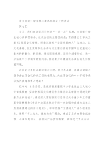工作,从提升学生素养做起,全面提高民族素质。我相信,在县委、县政府的领导下,有关方面密切配合,全县上下共同努力,我县提升中小学生发展核心素养工作一定会出现崭新的局面。同志们,X县德育教育工作和校园文化