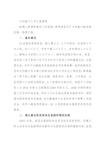 乡村振兴工作汇报提纲按照上级调研督导工作安排,现将我县关于乡村振兴推进情况做一简要汇报。一、基本情况XX县曾经是国贫县,辖X镇X乡、X个行政村,总面积X平方公里,总人口X万,农村户籍人口X万人,农村常住人口X万人,建档立卡贫困人口X户X人。脱贫攻坚战打响以来,县委、政府深入学习贯彻习近平总书记关于