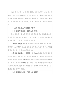 2022年上半年,在上级党组织的统筹领导下,我支部立足实际,围绕2022年***各专项工作要点开展党支部工作,紧密结合当前形势和支部实际,积极探索基层党建工作的新思路、新方法,全面推进支部各项工作落实见效,现将主要工作情况报告如下:一、上半年全面从严治党工作情况(一)加强思想建设,强化政治引