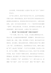 忠、为民办事的“公器”,做人民的公仆。必须强化群众观。我们党根基在人民、血脉在人民,为人民而生、因人民而兴。党团结带领人民进行干革命、搞建设、抓改革,归根到底是为了让人民过上好日子。要把人民放在心中最高位置