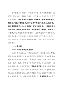 是我们面临的新课题,下面,我谈几点我的认识和体会:一、主要认识(一)科学化管理要尊重规律习近平总书记指出,“做好城市工作,首先要认识、尊重、顺应城市发展规律”。城市治理必须注重科学化,正如我国著名建筑学家梁思成曾说过的