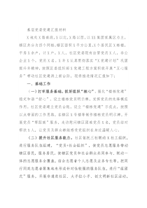 基层党委党建汇报材料X地处X路南段,X以北,X路以西,以XX集团家属区为主,辖区共分为四个网格。辖区面积X平方公里,X个居民区X栋楼,平房X余户,计X户,X人,社区党委现有自管党员X人,非公企业X个,党员X名。X年X认真贯彻落实“X党建计划”巩固提升年精神,按照区委