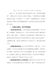 2021年市中级人民法院机关党建工作述职报告2021年,市中院机关党委在市级机关工委、院党组坚强领导下,围绕全市工作大局、法院工作重心,不断促进机关党建抓深做实出成效,努力践行“三个表率”,建设模范机关。院机关党委获评市级