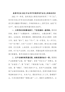 县委书记在2022年全市半年经济运行会议上的表态发言2022年一季度,虽然我县主要经济指标取得了“开门红”,但对标对表全市争先进位的氛围、你追我赶的态势仍有不小差距,我们将以翻篇归零的魄力、开辟新局的决心,紧盯目标、奋战“双过半”,推动全县经济高质量发展