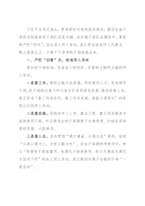 在乡语口碑中了解干部,既要在大事上看实绩,又要在小节中听口碑。三、严把能力关,坚持教育培养一是搭建政治教育平台。要发挥好党校培训主阵地作用,规划好干部教育培训五年规划,将党的十九大、二十大精神和习近平系列重要讲话