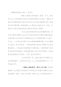 尊敬的指导组x组长、同志们:按照xx集团公司党委统一安排,今天,我们召开xx公司党委班子党史学习教育专题民主生活会。集团公司党史学习教育领导小组对本次民主生活会给予重视和关怀,委派党史学习教育第二指导组组长xx莅临会议指导点评。首先,让