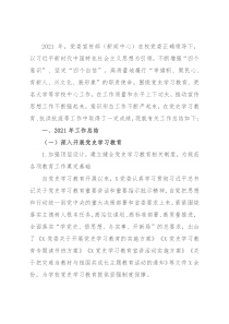 党史学习教育、更名大学等学校中心工作,在工作质量和水平上下功夫,推动宣传思想工作不断强起来,意识形态工作不断严起来,在党史学习教育、抗洪抗疫等工作中取得了一定成绩,现就有关工作总结如下:一、2021年工作总结(一)深入开展党史学习教育1.加强顶