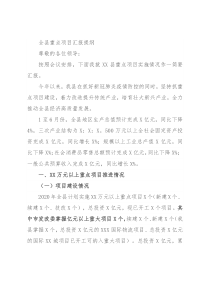 全县重点项目汇报提纲尊敬的各位领导:按照会议安排,下面我就XX县重点项目实施情况作一简要汇报。今年以来,我县在抓好新冠肺炎疫情防控的同时,坚持抓重点项目建设,着力改造提升传统产业,培育壮大新兴产业,全力推动全县经济高质量发展。1至6月份,