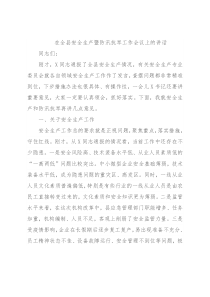 关于安全生产工作安全生产工作总的要求就是正视问题,聚焦重点,落实措施,守住红线。刚才,从X同志通报的情况看,当前工作中还存在不少隐患。一是安全风险高、技术装备水平低、从业人员素质低的“一高两低”问题比较突出。中