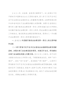 2021年,在县委、县政府正确领导下,本人坚持以习近平新时代中国特色社会主义思想为指导,深入学习习近平总书记在中央全面依法治国委员会上的重要讲话精神,全面贯彻落实党中央和省市县关于法治建设的重大决策部署。