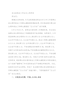 在全县政法工作会议上的讲话同志们:根据会议的安排,今天由我通报省综治办对X市X年度群众安全感和政法工作群众满意度的调查结果,并对我县提升群众安全感和政法工作群众满意度“五大行动”进行部署。X年X月至X月,省综治办委托第三方调查机构,对全省各地群众安全感和政法工作满意度进