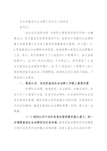 排部署X基层社会治理重点工作。昨天,我们观摩学习了X县流动人口管理中心、县公安局指挥中心,XX的工作运行情况;今天的会上,我们观看了X县关于基层社会治理的专题片,XX及X县流动人口管理中心作了很好的经验交流发言,我都赞