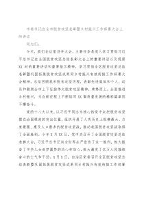 市委书记在全市脱贫攻坚表彰暨乡村振兴工作部署大会上的讲话同志们:今天,我们在这里召开大会,主要任务是深入学习贯彻习近平总书记在全国脱贫攻坚总结表彰大会上的重要讲话以及视察XX时的重要讲话和重要指示精神,学习贯彻全区脱贫攻坚总结表彰暨巩固拓展脱贫攻坚