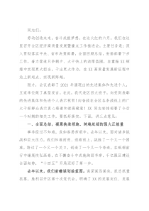 广大干部群众表示衷心感谢和崇高敬意!XX同志安排部署了今后一个时期的相关工作,要抓好落实。下面,讲三点意见:一、全面总结,凝聚换道领跑、跨越赶超的强大正能量事非经过不知难,成如容易却艰辛。去年以来,面对诸多挑战和巨大压力,我们知难而进、迎难而上,战胜了一个又一个