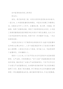 在市直党校培训班上的讲话同志们:首先,我代表市直工委,欢迎大家到市直党校来参加培训。一直以来,X市委高度重视党的建设,市直机关党建工作搞得扎实,在服务全市中心工作中,注重谋全局、抓大事、打基础、树典型,取得了显著的成绩,得到了市委领导的充分肯定。X市直工委高度重视基层组织建
