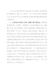 部在关键时刻的政治态度、处置复杂问题的决策水平和应对突发事件的工作能力,提升干部的担当格局;考察干部面对矛盾和复杂形势是否善于应对、攻坚克难,提高干部的担当能力。通过考察识别及辩证分析干部主观努力与客观条件、工作基础与实现业绩、