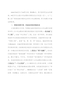 层党组织在乡村治理中的领导作用,为乡村治理体系建设提供强有力组织保障。一是实施“三个工程”。实施“书记领谈”工程,压实一把手职责,深化基层党组织书记抓基层党建述职评议考核制度。实施村级后备力量“常青工程”,坚持“选、管、育、用”相结合,储备村级后备力量****名。