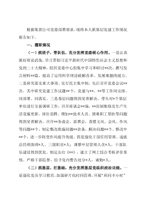 根据集团公司党委部署要求,现将本人抓基层党建工作情况报告如下。一、履职情况(一)抓班子,带队伍,充分发挥党委核心作用。一是认真抓好理论武装。学习贯彻习近平新时代中国特色社会主义思想和党的二十大精神,组织党委中心组集中
